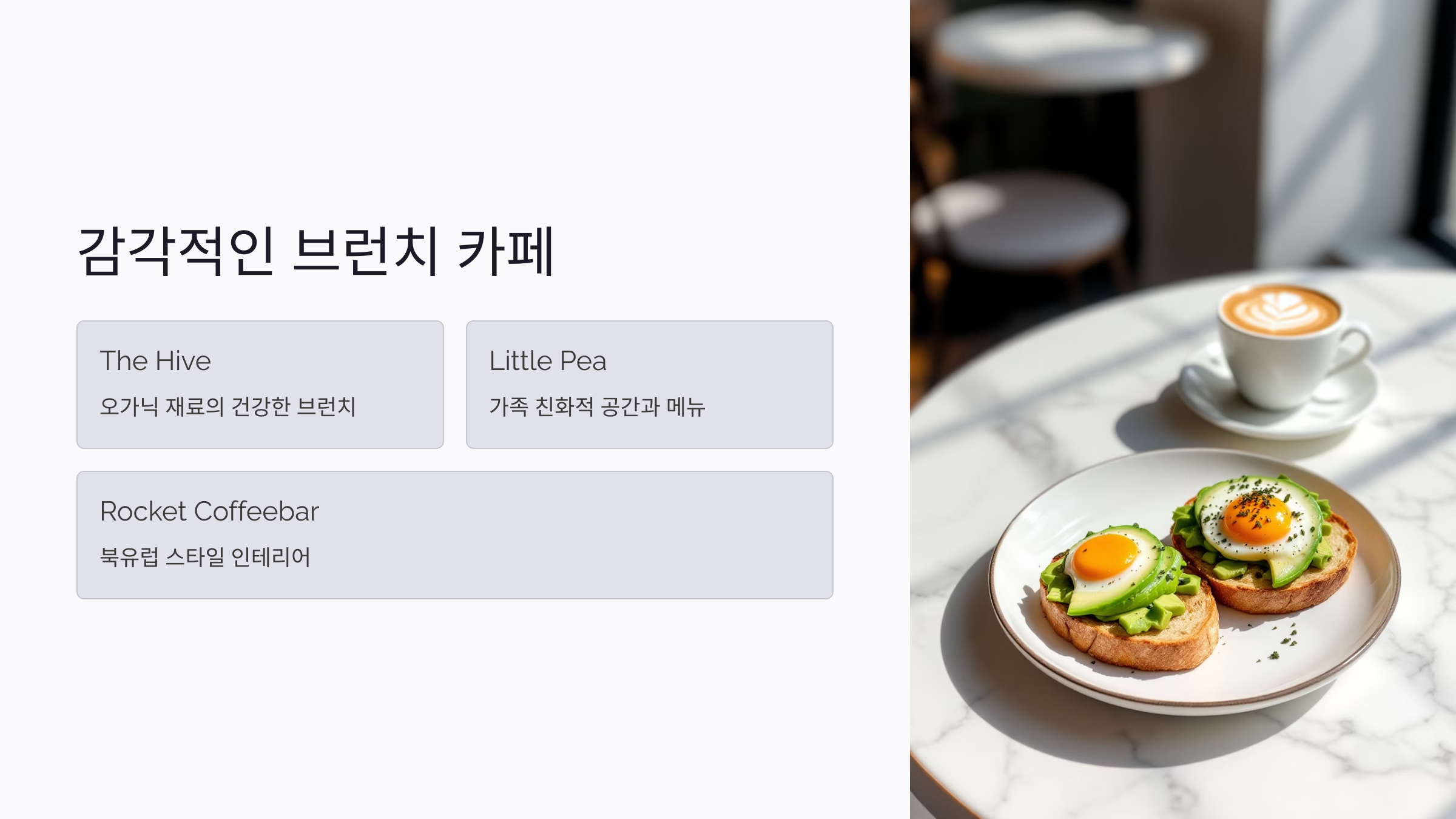 통로에서 즐기는 감각적인 브런치 카페